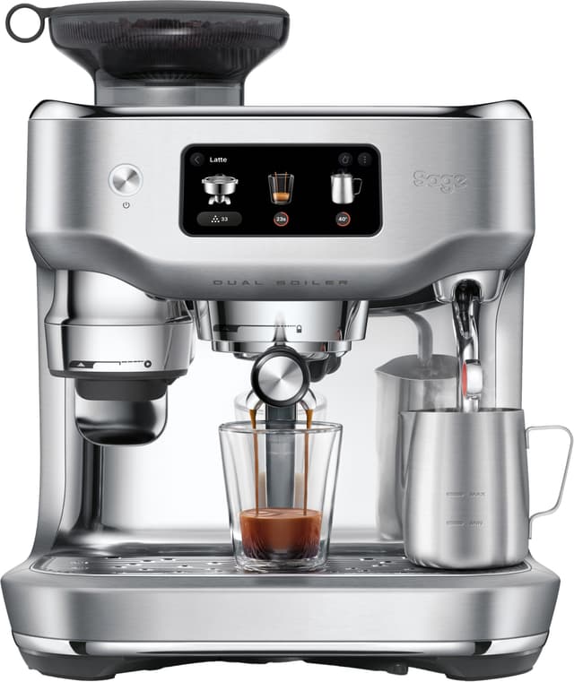 Sage Oracle Dual Boiler espressomaskin SES995BSS har en 5,7" touchskjerm som lar deg velge mellom Auto og Manuell modus. De doble tilberedningsenhetene med PID-kontroll gir presis trakting og damping, mens Auto Dial-In sikrer konsistente shots. Med Auto Puck for dosering og tamping, Auto MilQ for silkeaktig melkeskum, og Sage+ appen for fjernstart og forvarming, bringer den kafékvalitet til kjøkkenet ditt.