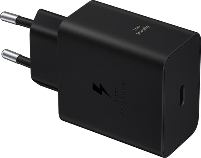 Samsung 60W strømadapter leverer rask og sikker lading for Galaxy-enheter med 60W utgangseffekt, USB-C-grensesnitt og et stilig, sort design, alt i en kompakt konstruksjon.
