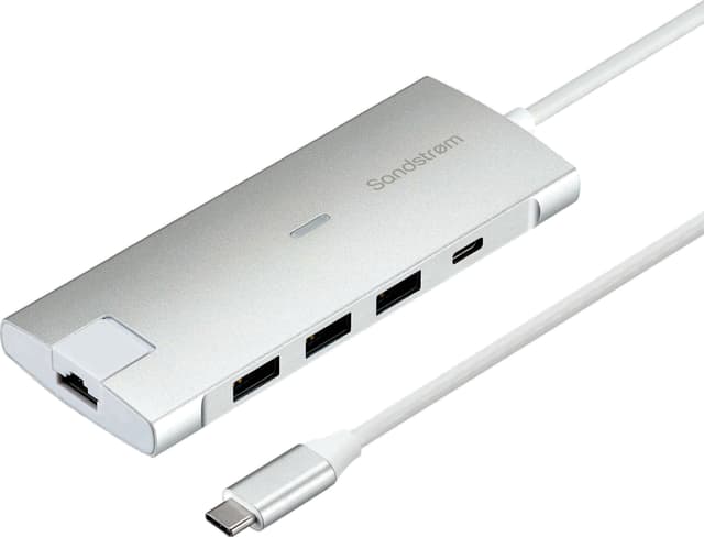 Sandstrøm 8-i-1 hub gir din enhet en mengde tilkoblingsmuligheter. Dette tilbehøret passer til enheter med lav profil og én enkel port, og gir deg en rekke USB-porter, inkludert USB-C med strømforsyning, HDMI, Gigabit LAN-port og mer.Les mer om produktet