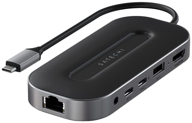 Satechi USB4 Multiport USB gir deg rask og kablet internett samt en rekke tilkoblingsalternativer til din bærbare PC. Huben støtter video opptil 8K, USB4 med overføringshastigheter opptil 40 Gbps, og har ellers to USB-C-porter og Power Delivery-lading.Les mer om produktet