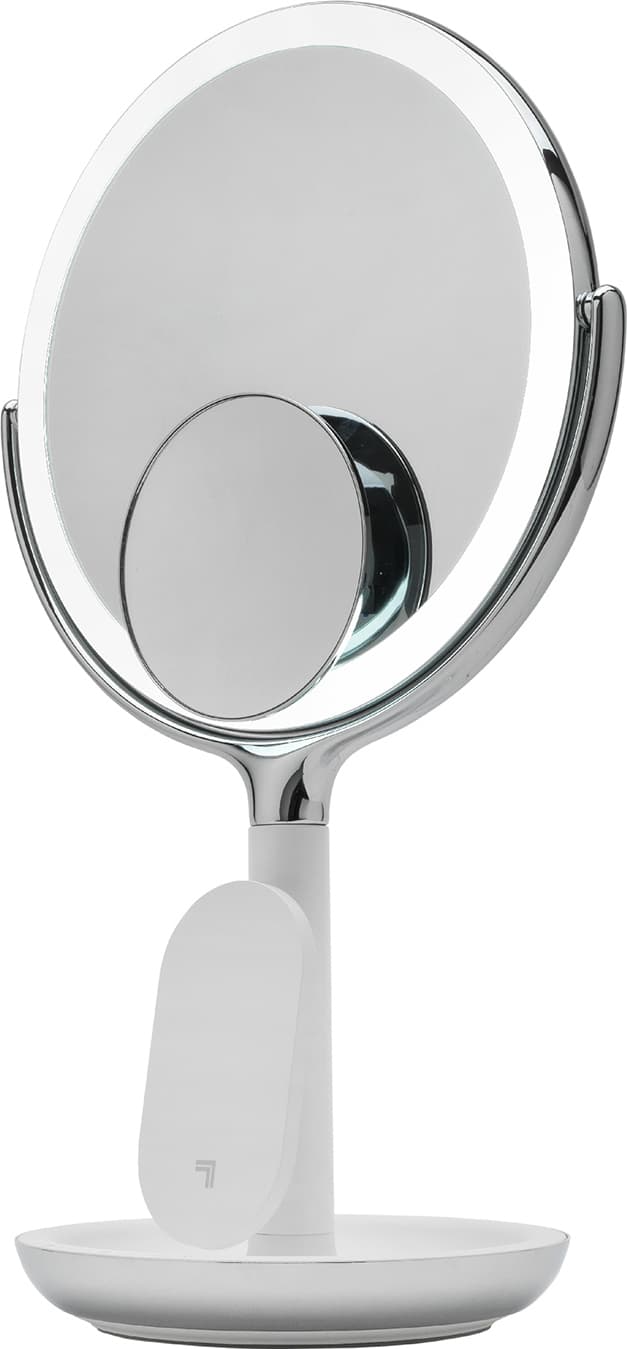 Gjør skjønnhetsrutinen din bedre med Sharper Image trådløst LED sminkespeil P001307. Det har justerbare LED-lys og trådløs lading. Speilet leveres med et stativ der du kan plassere Qi-kompatible enheter.Les mer om produktet