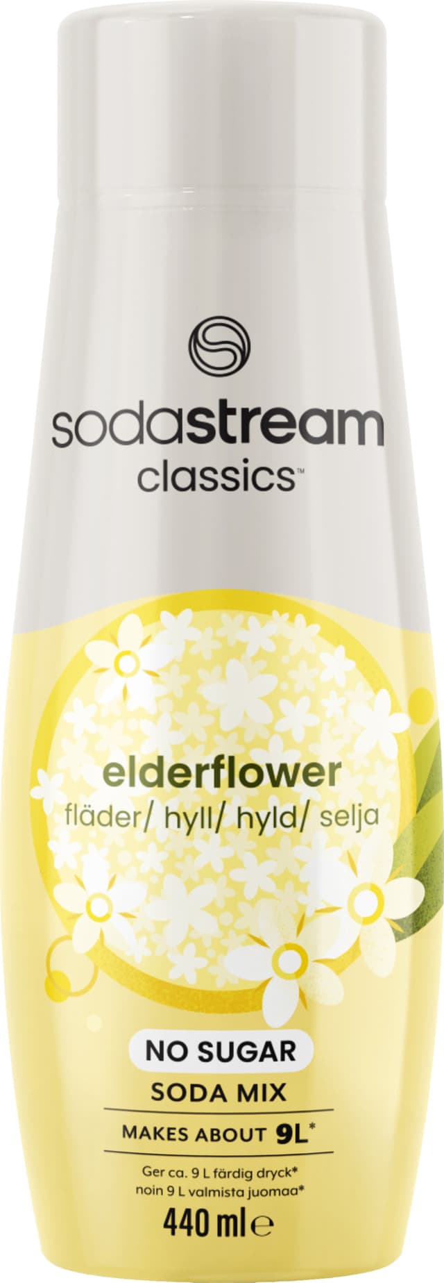 Sodastream Fruits hylleblomst-konsentrat består av 440 ml saft, nok til 9 liter med ferdig drikke. Dette sukkerfrie konsentratet er forfriskende, og passer perfekt sammen med kullsyret vann.