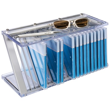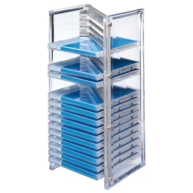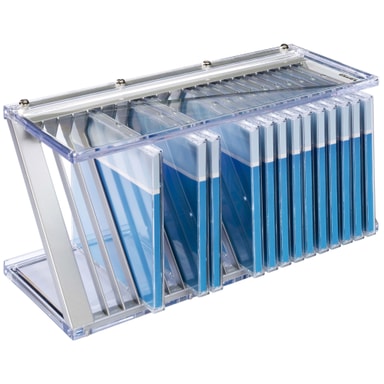 Cd-stativ nexus 20 sølv. Stativ for 20 cd-plater . Ekspanderbarkan brukes enten horisontalt eller vertikalt. Kan også brukes som stativ for ulike små ting.