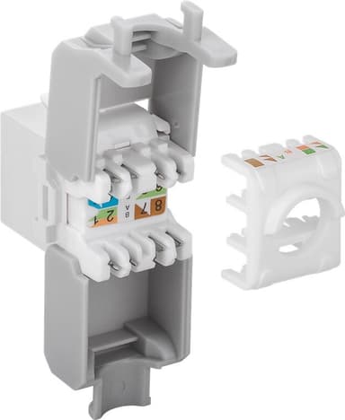 RJ45-kontakter for installasjon i Keystone-patchpaneler, nettverksuttak og -hus