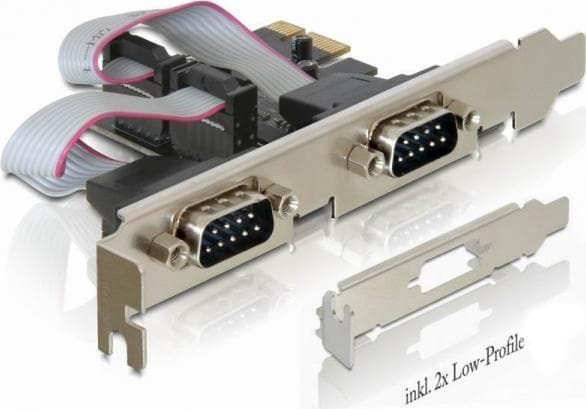 DeLOCK PCI-Express x1 kort med 2xSerieporter, RS-232, DB9 ut, 2xlavprofil-dekkeplater128 byte FIFO.16C950 UART.Opp til 230,4 Kbps.Støtter Windows 2000/2003/XP/Vista/7/8/8.1.Les mer om produktet