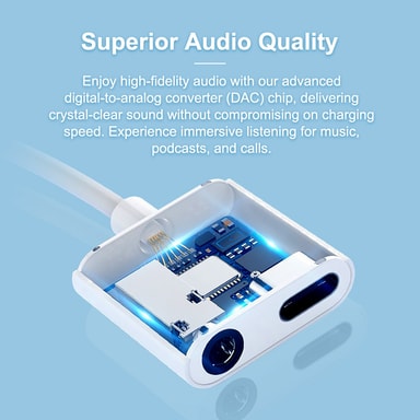Overlegen lydkvalitet: Opplev krystallklar lyd ved hjelp av den avanserte digital-til-analog-omformer-brikken (DAC). Den leverer lyd av høy kvalitet uten å påvirke ladehastigheten, noe som gjør den ideell for musikk, podcaster og samtaler.