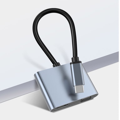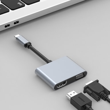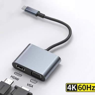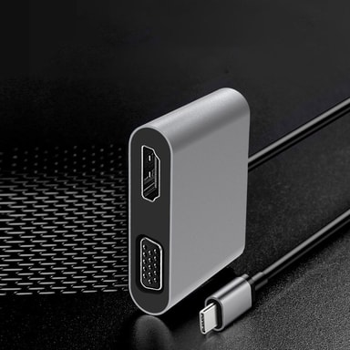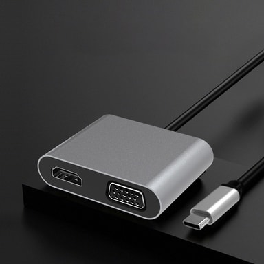 Allsidig VGA-tilkobling: I tillegg til HDMI har denne huben også en VGA-port, slik at du kan koble til projektorer, skjermer eller andre skjermer med VGA-inngang. Denne muligheten for dobbel utgang gjør den til en allsidig løsning for ulike oppsett.