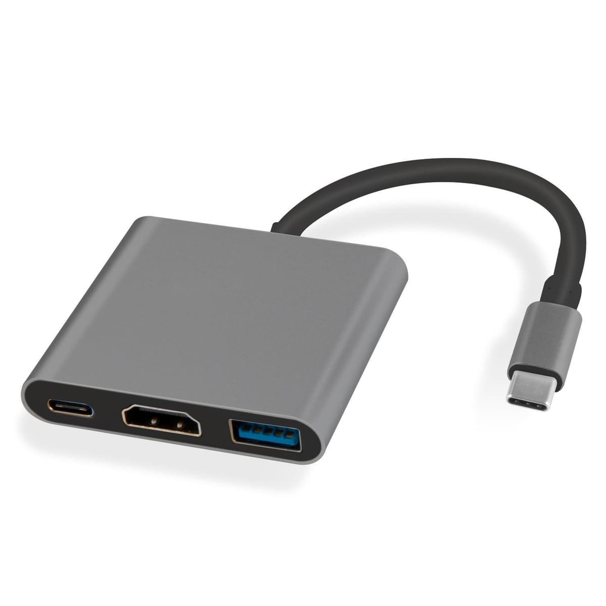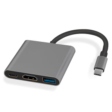 NÖRDIC 1 til 3 Docking Station USBC til HDMI 4K 30Hz USB C Strømlevering 60W og USB A 3.1 5Gbps Space Grey