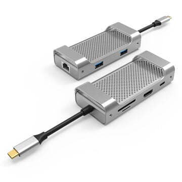 NÖRDIC 1 til 7 dokkingstasjon konverterer en USB C- eller Thunderbolt-port til 7 porter inkludert 1xHDMI 4K 30Hz, 1x RJ45 Giga Ethernet, 2x USB 3.1 5Gps, 1x USB C PD87W og 1x SD/TF-kortleser. Kompatibel med de nyeste MacBook, Pro, Air og de fleste USB C ThunderBolt 3 Windows-datamaskiner.