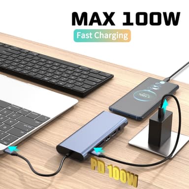 NÖRDIC 1 til 14 USB-C Dockingstasjon er en komplett tilkoblingsløsning for moderne bærbare PC-er og nettbrett. Den støtter opptil tre eksterne skjermer med fantastisk 4K-oppløsning, ultrarask dataoverføring og kraftig lading opptil 100W – alt via én USB-C-tilkobling. Perfekt for arbeid, kreativitet og underholdning.