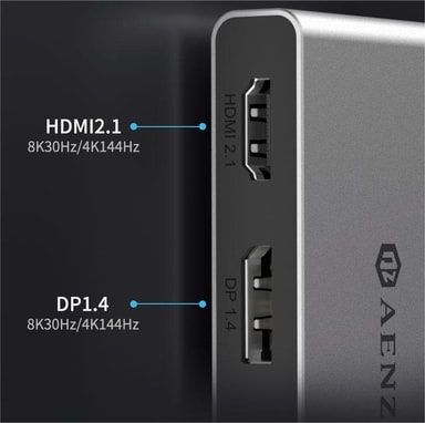 NÖRDIC USB-C 1 til 4-dokkingstasjon konverterer en USB-C-port på datamaskinen din til 1x HDMI 2.1, 1x Displayport 1.4, 1x USB-C Power Delivery 100W og 1x USB-A 2.0. Både HDMI- og DP-portene støtter oppløsninger på opptil 8K30Hz og det er mulig å både utvide og speile datamaskinens skrivebord via MST. USB-A 2.0-porten støtter dataoverføringshastigheter på opptil 480 Mbps og det er også mulig å lade datamaskinen under bruk med 100W strøm via USB Power-leveringsporten. Dokkingstasjonen krever verken drivere eller ekstern strømforsyning.Spesifikasjoner: