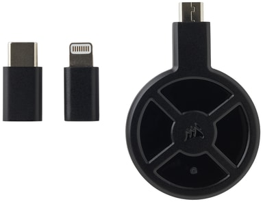 Musematten har et ladepunkt som lader opp batteriet til enhver Qi-kompatible enhet. I tillegg sørger de inkluderte Micro USB-, USB-C- og Lightning Qi-ladeadapterne for at du også kan lade så godt som alt annet også.