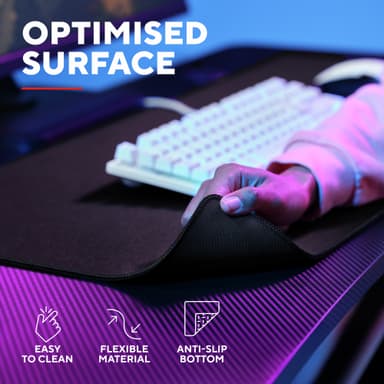 Trust GXT759 musematte er designet for å gi deg en stor, jevn overflate på 900 mm x 400 mm for optimale musebevegelser. Den har funksjoner som en gummibase med antiskli, sydde kanter for å forhindre revning, og er laget av lettrengjørlig materiale.Les mer om produktet