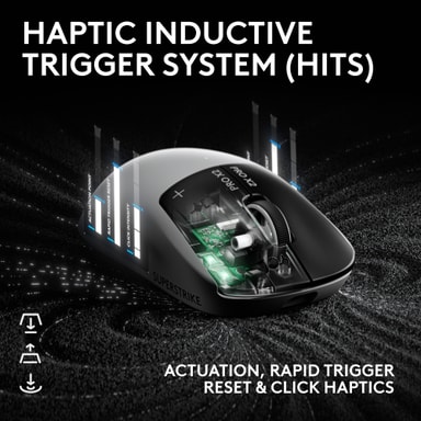 Haptic Inductive Trigger System-knappene erstatter mekaniske brytere med analog induktiv avlesning, med 10-trinns justerbar aktivering, 5 raske tilbakestillinger av utløseren og justerbar haptisk tilbakemelding for å redusere klikkforsinkelsen med 30 ms, noe som gir tilpasning og hastighet på proffnivå med en bevegelsesbane på 0,6 mm.