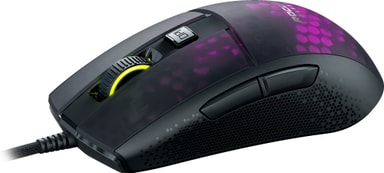 Musen har et solid og lett bikake-design med en vekt på kun 68 gram. I tillegg er musekroppen gjennomskinnelig slik at du kan beundre AIMO-belysningens RGB-farger og LED-effekter.