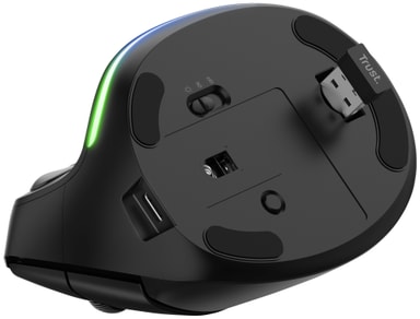 Trust Bayo ergo trådløs mus eco lar deg ta et lite steg mot en sunnere arbeidshverdag. Musen har et ergonomisk vertikalt design som hjelper til å redusere belastningen på både armer og håndledd. Den er også et miljøbevisst valg, da den er laget med 79% resirkulert plast. Med seks knapper, justerbar DPI opptil 2400 og 10 m trådløs rekkevidde, er dette en mus som du genuint vil like å bruke. Som en liten bonus har musen en justerbar LED-stripe, slik at du kan gi den et personlig preg.