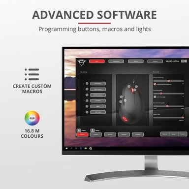 Gjør det på din måte Den brukervennlige programvaren lar deg justere musen så den passer din stil. Enten du ønsker å stille inn knappefunksjoner, makroer eller til og med RGB-belysning, så er det unnagjort på et blunk og kan lagres i det integrerte minnet.