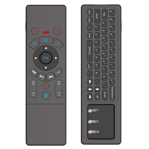 Med Air mouse får du alle funksjoner i en enhet. På den ene siden sitter en fjernkontroll og på den andre et tastatur med touchpad. Og med sin IR-innlæring er den kompatibel med 99 prosent av alle fjernkontroller på markedet.