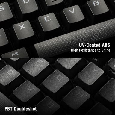 Slitesterke PBT-tastaturkapper eller UV-belagte ABS-tastaturkapper gir en førsteklasses tekstur og motstår glans over tid. Den medfølgende mellomromstasten med ROG-tema gir en unik touch, komplett med RGB-belysning på undersiden. Velg mellom tre vippeposisjoner, og nyt ekstra komfort med den avtakbare håndleddsstøtten.