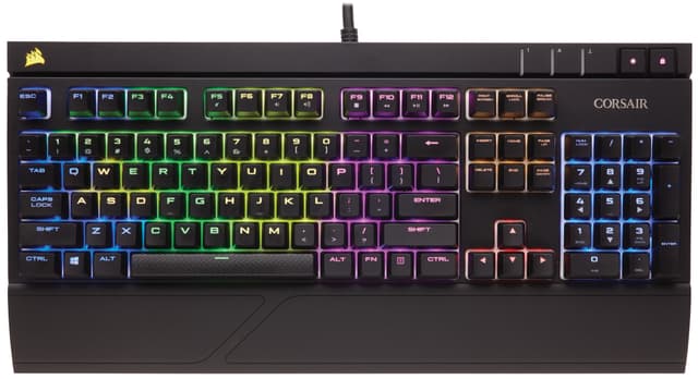 Corsair Strafe RGB mekanisk gamingtastatur er utstyrt med Cherry MX Red-brytere av høy kvalitet som gir støyfri respons. Tastaturet er helt programmerbart og du kan sette opp dine egne kommandoer og lage makroer etter eget ønske. Den avtakbare, myke håndleddsputen gir høy komfort, selv under lange gamingøkter.