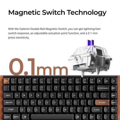 Keychron K2 HE trådløst tastatur forener Gateron 2.0 Purple Magnetic-brytere med et 75%-oppsett, med trippel-modus tilkobling, justerbar aktivering, og levende RGB-belysning for en strålende taste- og gamingopplevelse.Les mer om produktet