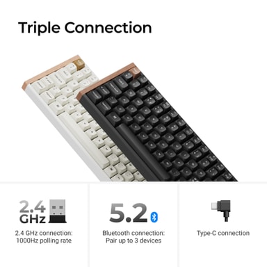 • 2,4 GHz trådløs, Bluetooth, USB-C