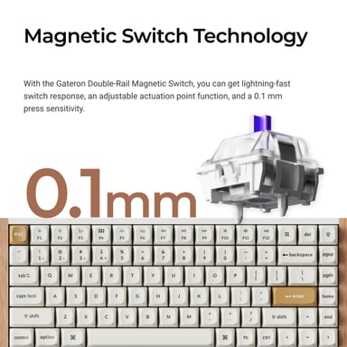 Keychron K2 HE trådløst tastatur forener Gateron 2.0 Purple Magnetic-brytere med et 75%-oppsett, med trippel-modus tilkobling, justerbar aktivering, og levende RGB-belysning for en strålende taste- og gamingopplevelse.Les mer om produktet