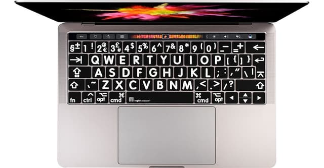 Logickeyboard Large Print hvitt på svart tastaturoverlegg for Macbook Pro Touch Bar 2016 er designet for å gi brukerne en enklere og mer nøyaktig måte å skrive på tastaturet ved hjelp av store bokstaver, tall og symboler. Enten du bruker tekstbehandling, regneark eller andre dataprogrammer, vil dette tastaturet hjelpe deg med å lettere utføre oppgavene.