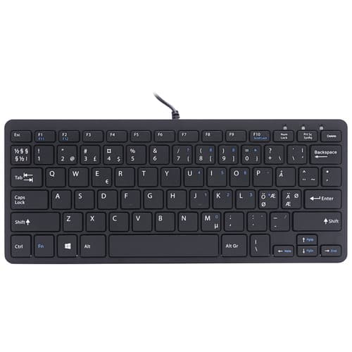 Ergo kompakt tastatur er et kompakt, ergonomisk tastatur. Dette sikrer at hendene alltid holder seg innenfor skulderbredde når du bruker tastaturet og musen samtidig. Dette igjen sikrer at skulder og albue havner i en naturlig avslappet stilling som bidrar til å forhindre belastningsskader.