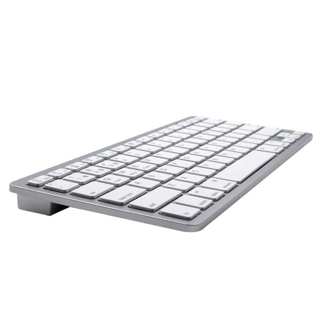 Lett og stilig design: Moderne lite Bluetooth-tastatur i sølv og hvitt som passer perfekt til for eksempel iPad og andre nettbrett. I ultratynt design med en maksimal høyde på bare 6,7 mm.