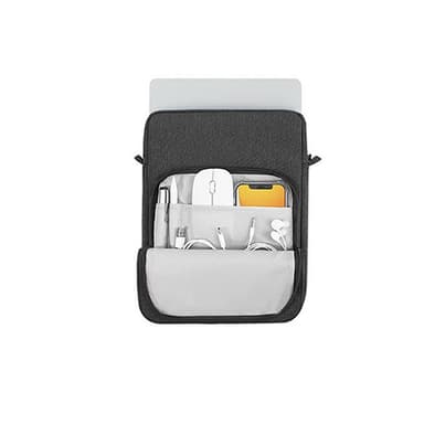 Førsteklasses materialer: Laget av høykvalitets polyester som er slitesterk, ripebestandig og vanntett, og gir pålitelig beskyttelse for den bærbare datamaskinen og viktige dokumenter mot daglig slitasje.