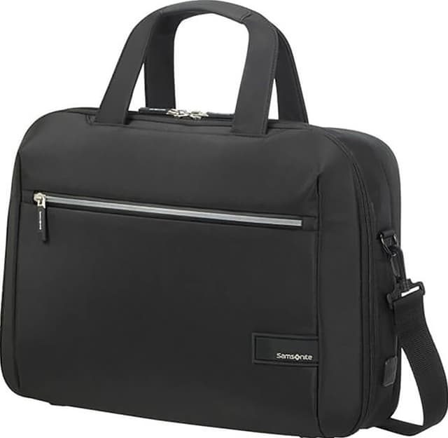 Samsonite LITEPOINT EXP Bailhandle 15,6" PC-veske forandrer måten du bærer din bærbare PC på. Den er laget av miljøvennlig materiale og er utstyrt med smarte funksjoner slik som integrert USB-port, internt kabelhåndteringssystem og powerbank-lomme.Les mer om produktet