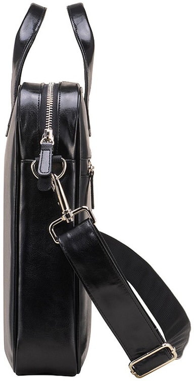 Dette er en tynn PC-veske fra Sandstrøm i imitert sort skinn. Vesken gir deg nok plass til både PC og tilbehør. En borrelås sikrer PC-en under transport og vesken har separat lomme for tilbehør. Den utvendige lommen med glidelås er perfekt for mobil eller andre ting du ønsker å ha lett tilgjenglig. Skulderstroppen kan justeres for maksimal komfort.