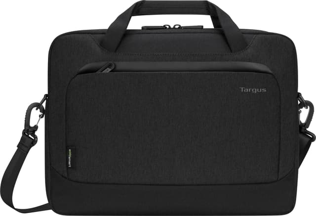 Targus Cypres Eco 14" PC-veske har et stilig lettvektig og slankt design som er perfekt til hverdagsbruk. Vesken har praktisk innvendig organisering med en dedikert polstret PC-lomme for maskiner på opptil 15,6" og en praktisk lomme. Den er godt egnet til forretningsreiser siden den kommer med en stropp på baksiden for å feste vesken på håndtaket til en trillekoffert.
