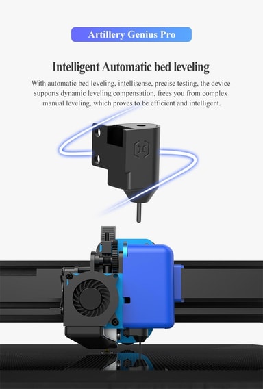 Genius Pro fra Artillery som er enda bedre og har automatisk levelering av skriveflate. Videre har den byggevolum på 220x220x250mm, farge- touchskjerm, titan ekstruder med direkte mating av filament, filamentsensor, AC skriveflate for rask oppvarming, 32bits hovedkort,