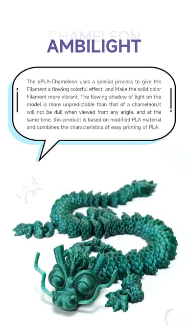 eSUN Chameleon PLA filament er et fargeskiftende filament som reagerer på forskjellige lys og vinkler.Les mer om produktet