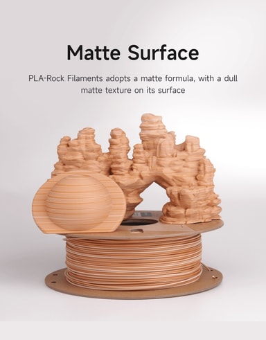 eSun PLA Rock, et matt filament som gjenskaper steinens naturlige farge med en realistisk, lagdelt tekstur.Les mer om produktet