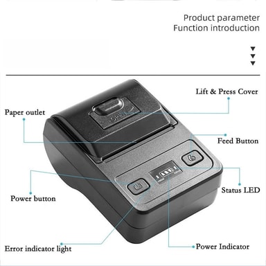 Parametere: Papirbredde: 58mm, Utskriftsbredde: 48mm, Oppløsning: 203DPI, Utskriftshastighet: 70-90mm/s, Batteri: 2000mAh