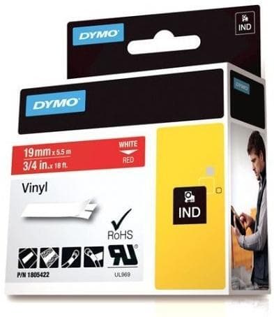 DYMO Rhino Professional, 19mm, merkbar vinylteip, hvit tekst rød teip