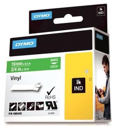DYMO Rhino Professional, 19mm, merkbar vinylteip,hvit tekst grønn tei