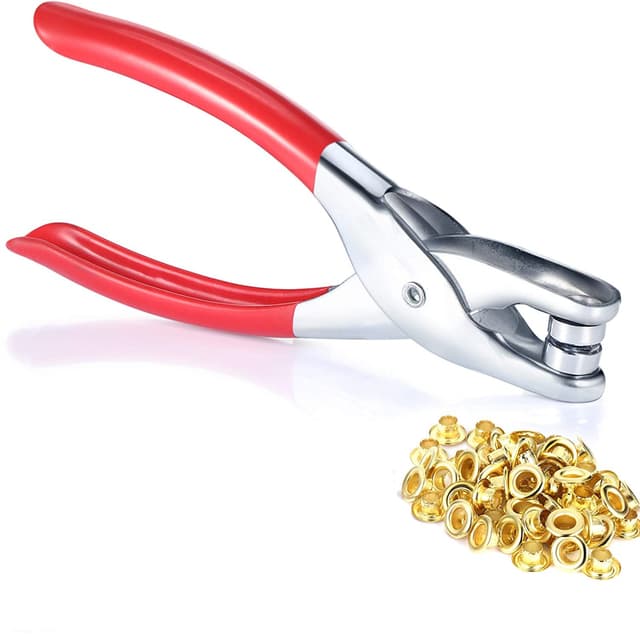 Perkusjonisten kan slå hull i lær, belter, plast, gummi, lerret, stoff, papp, saler og lignende materialer. Kom med 100 stykker metallløkker, perfekt for å lage ditt eget perfekte skinnhåndverk.