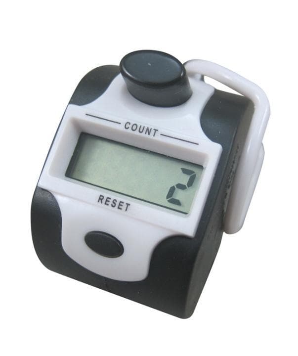 En håndteller som hjelper deg med å holde styr på antall gjester som passerer inngangen din. Trykknapp og ringeklokke.