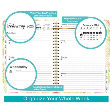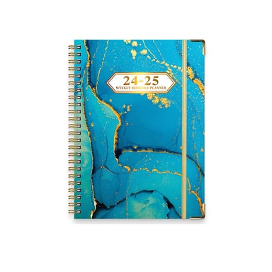 Langvarig bruk: Denne planleggeren strekker seg fra juli 2024 til juni 2025, og gir over et år med planleggingsplass for avtaler, tidsfrister og mål.