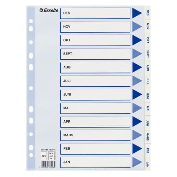 PP-register i hvit farge med tolv faner, desember-januar. Forsidearket har god plass til beskrivelse av innholdet og en forsterket hullkant. Universalregister med elleve hull.