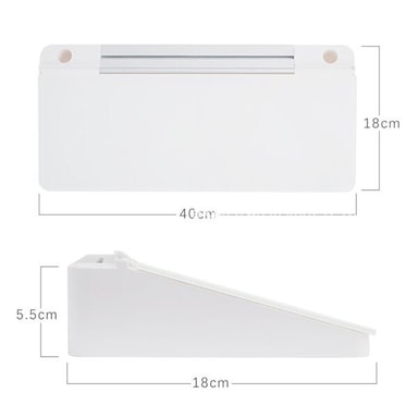 Spesifikasjoner - Materiale: plast, herdet glass (whiteboardtavle) - Mål: 40 cm x 18 cm x 5,5 cm