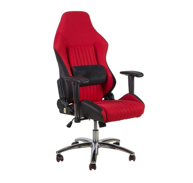 Arbeidsstol RECARO rød/svart. Sete og rygg er dekket med polyesterstoff. Rammen er svart. Stolen har en synkron mekanisme som låses i alle posisjoner. Pneumatisk setehøydekontroll. Vinkelen på ryggstøtten er justerbar 180°. Armlenene er laget av polyuretan. Høyden på armlenene er justerbar. Basen er laget av stål, farge krom. Stolen har gummihjul. Høyde 118-130cm, setehøyde 45-57cm, setedybde 50cm, setebredde 52cm. Dimensjonene på produktet er 67x64xH118-130cm. Vektkapasiteten er 120 kg.