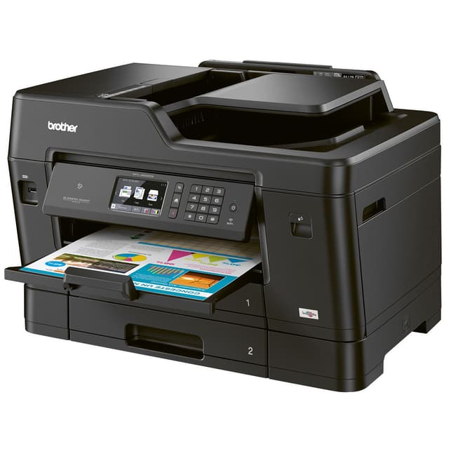 Multifunksjonsskriveren fra Brother er en allsidig alt-i-ett skriver som passer like godt til profesjonelt bruk som i travle kontorlandskap. Den gir deg lynrask utskrift i både farger og sort/hvitt på papirstørrelser opptil A3. Den har et stort utvalg av både kablet og trådløse tilkoblingsmuligheter, inkludert one-touch NCP-paring, gruppenettverksprinting og tilkobling fra hele verden ved hjelp av mobil- eller skyprinting. Valgfrie høykapasitets blekkpatroner, stort papirbrett, automatisk dobbeltsidig printing og EcoMode reduserer brukskostnaden for denne skriveren. 9,3 cm touchskjerm med farge gjør at du enkelt har kontroll over alle funksjoner.