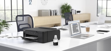 Skriveren kommer med tre høytytende blekkpatroner – nok til opptil 18000 utskrifter. Påfyll er også enkelt og kan praktisk gjøres av hvem som helst.