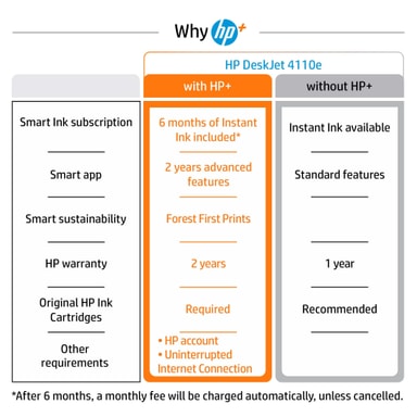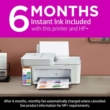 Nå trenger du ikke lenger holde oversikten over gjenværende blekknivå - du trenger bare å registrere deg med HP+ og få 6-måneders Instant Ink-program. HP vil holde oversikten over blekknivået for deg og leverer nye blekkpatroner når dine nåværende begynner å bli tomme. HP+ gir også forlenget garanti, selvreparerende WiFi som automatisk løser tilkoblingsproblemer, og flere avanserte funksjoner i HP Smart-appen.