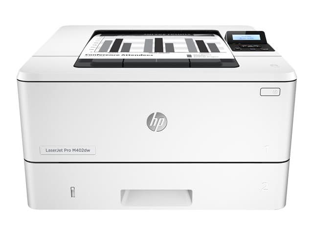 Med HP Laserjet Pro M402dw sort/hvit laserskriver kan du enkelt oppfylle utskriftsbehovene til en mindre bedrift eller et team i bedriften din. Skriveren produserer sort/hvitt-utskrifter raskt og i høy kvalitet fra lokal PC, bedriftsnettverk eller skybaserte kilder. Innebygget trådløst nettverk lar deg skrive ut fra bærbar PC, nettbrett eller mobilenheter på en enkel måte. Automatisk dobbeltsidig utskrift sørger for at du sparer på papirkostnadene, og det miljøvennlige designet reduserer strømforbruket, slik at skriveren er en kostnadseffektiv løsning. Skriveren har to arkmatere med en kombinert kapasitet på 350 ark, og du kan utvide denne kapasiteten med tilleggsmatere (selges separat) til opptil 900 ark.